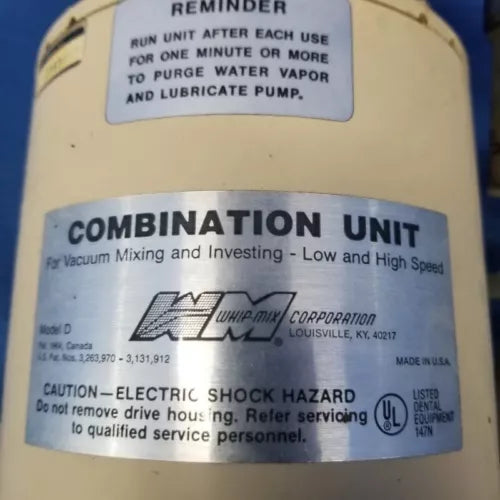 Whip Mix Combination Unit Model D For Vacuum Mixing & Investing